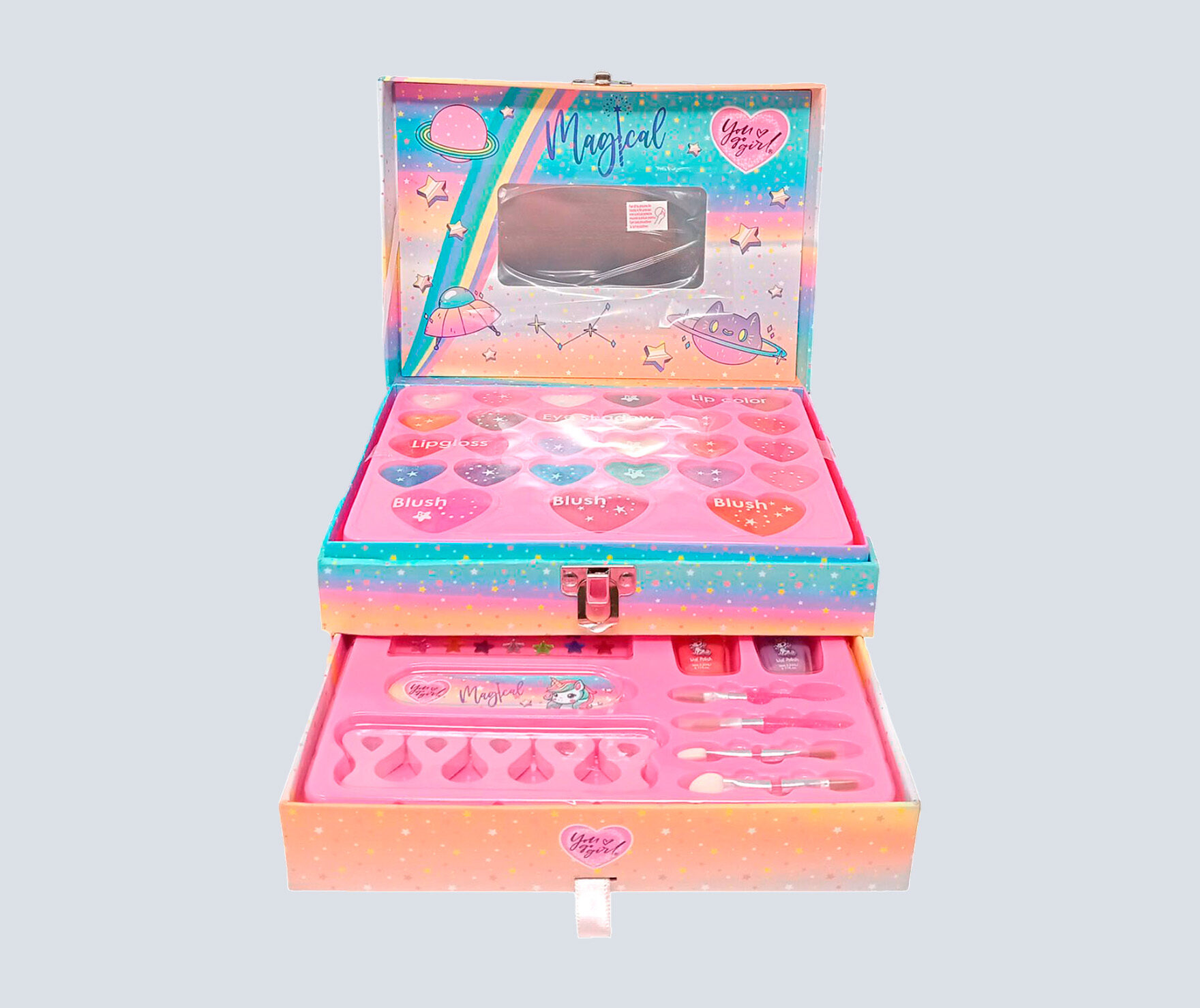 La línea más adorada por las niñas. Variados Kits de maquillaje infantil para niña con hermosos y llamativos colores, siempre con fantásticos y tiernos diseños.